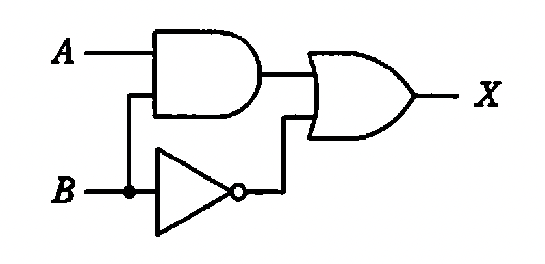 $${X = A \cdot B + \overline{B}}$$