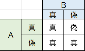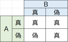 これを元に真理値表を作成すると以下のようになる。