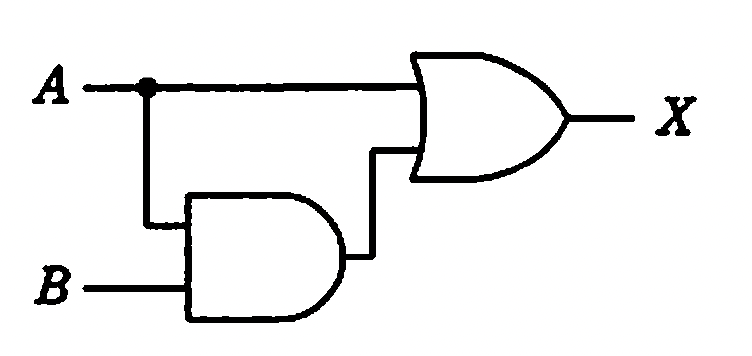 $${X = A + (A \cdot B)}$$