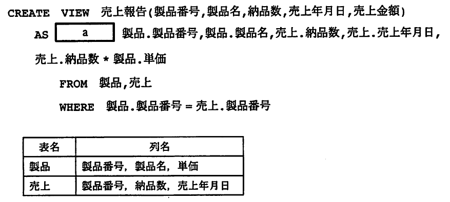 ある企業では,顧客マスタファイル,商品マスタファイル,担当者マスタファイル及び当月受注ファイルを基にして,月次で受注実績を把握している。各ファイルの項目が表のとおりであるとき,これら四つのファイルを使用して当月分と直前の3か月分の出力が可能な受注実績はどれか。 ア 顧客別の商品別受注実績 イ 商品別の顧客別受注実績 ウ 商品別の担当者別受注実績 エ 担当者別の顧客別受注実績...